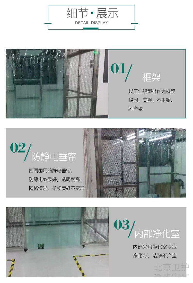 潔凈工作棚(簡稱:潔凈棚)(CLEAN BOOTH)是為快速方便建立的一座簡易潔凈室,潔凈棚具備多種潔凈等級及空間搭配可以根據使用需求設計制作,因此其簡便運用彈性大安裝容易且施工期短以及可移性為其主要特點,潔凈工作棚同時可針對在一般等級的潔凈室中局部地區需要高潔凈度的地方做局部增設以降低成本。潔凈工作棚是一種可提供局部高潔凈環境的空氣凈化設備。潔凈棚主要由箱體、風機、初效空氣過濾器、阻尼層、燈具等組成,外殼噴塑。該產品既可懸掛,又可地面支撐,結構緊湊,使用方便。可以單個使用,也可多個連接組成帶狀潔凈區域。
