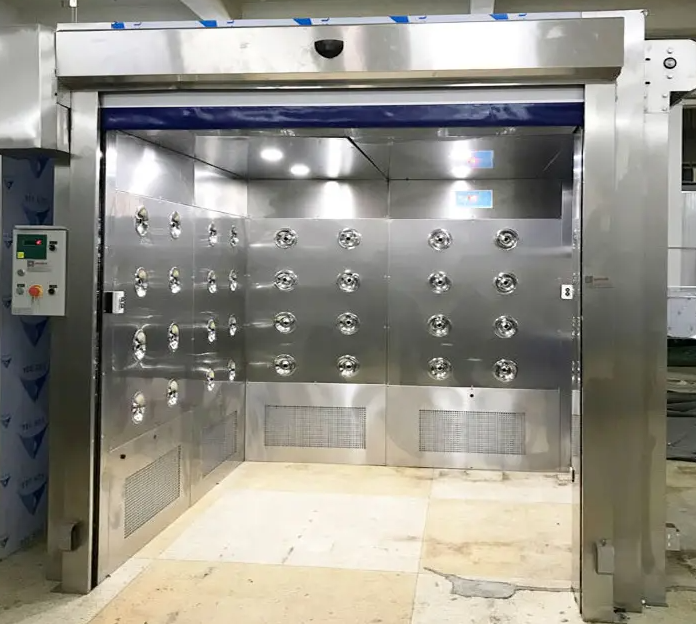 貨淋室是潔凈廠房和潔凈室的輔助設備,用于除去進入凈化廠房的物品表面附著的塵埃,同時貨淋室也起到氣閘的作用,防止未經凈化的空氣進入潔凈區域,是進行物品凈化和防止外空氣污染潔凈區的有效設備。